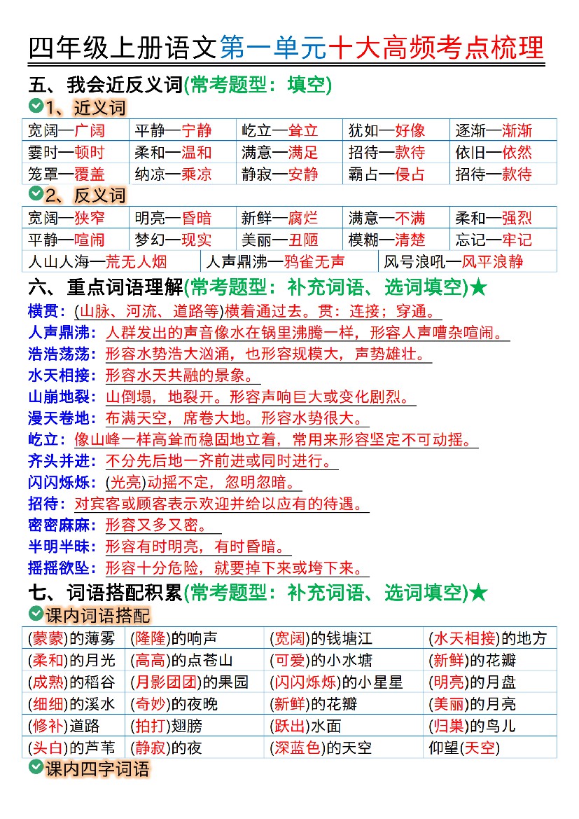 首页 > 全部 > 知识要点 > 四年级上册语文1-2单元知识点总结