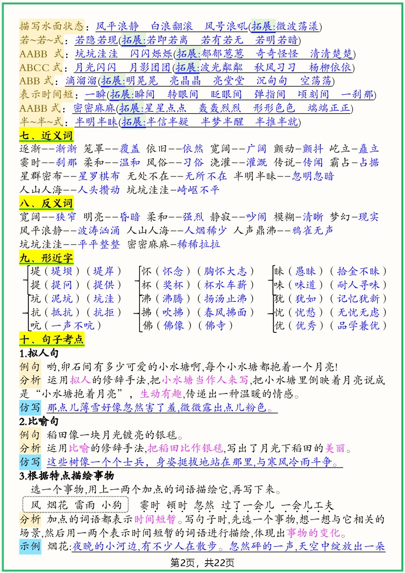 小学 四上语文1-8单元高频考点总结单(十二个考点归纳)22页