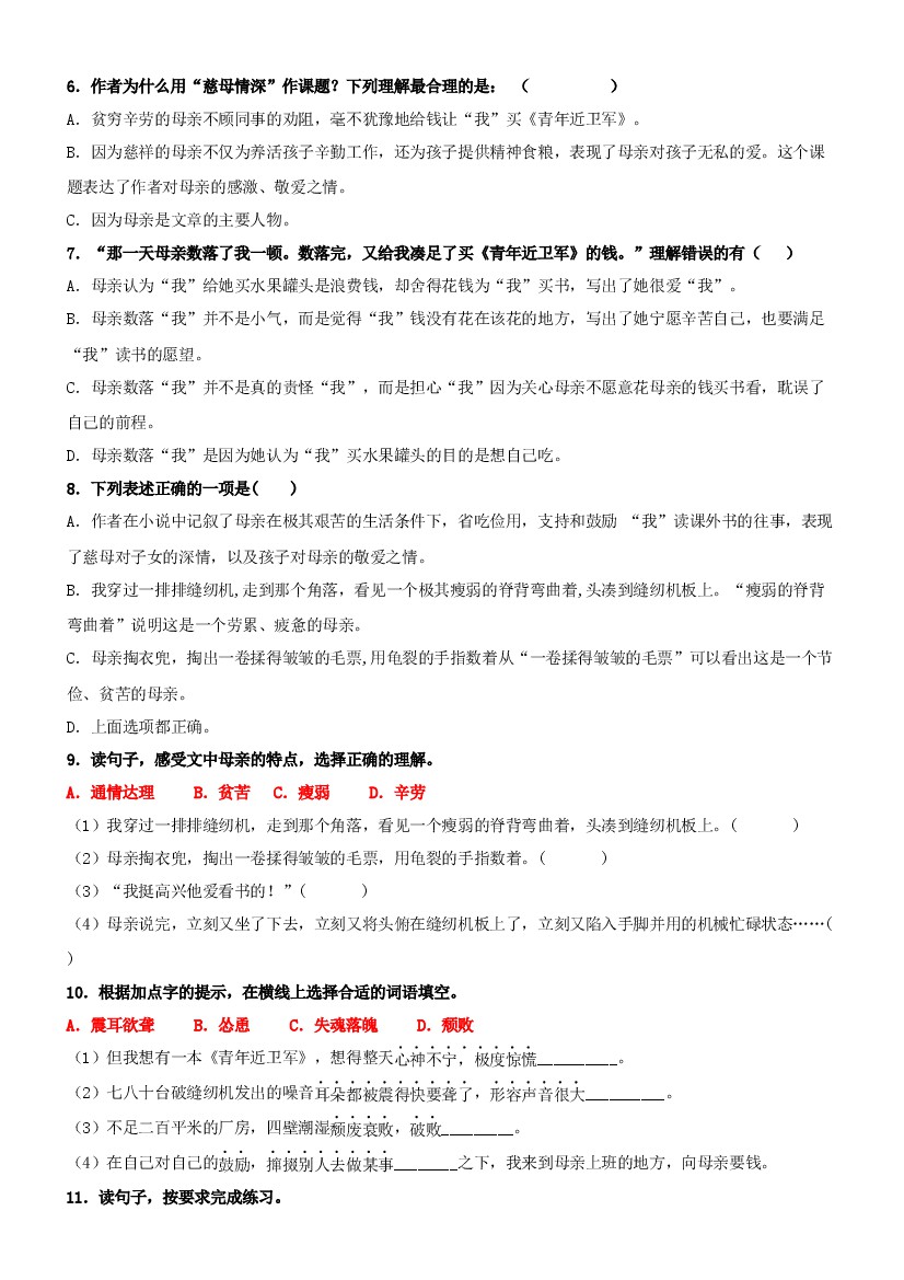 首页 > 全部 > 课时练习 > 第18课《慈母情深》精品配套练习(基础+阅读)-部编版五年级上册