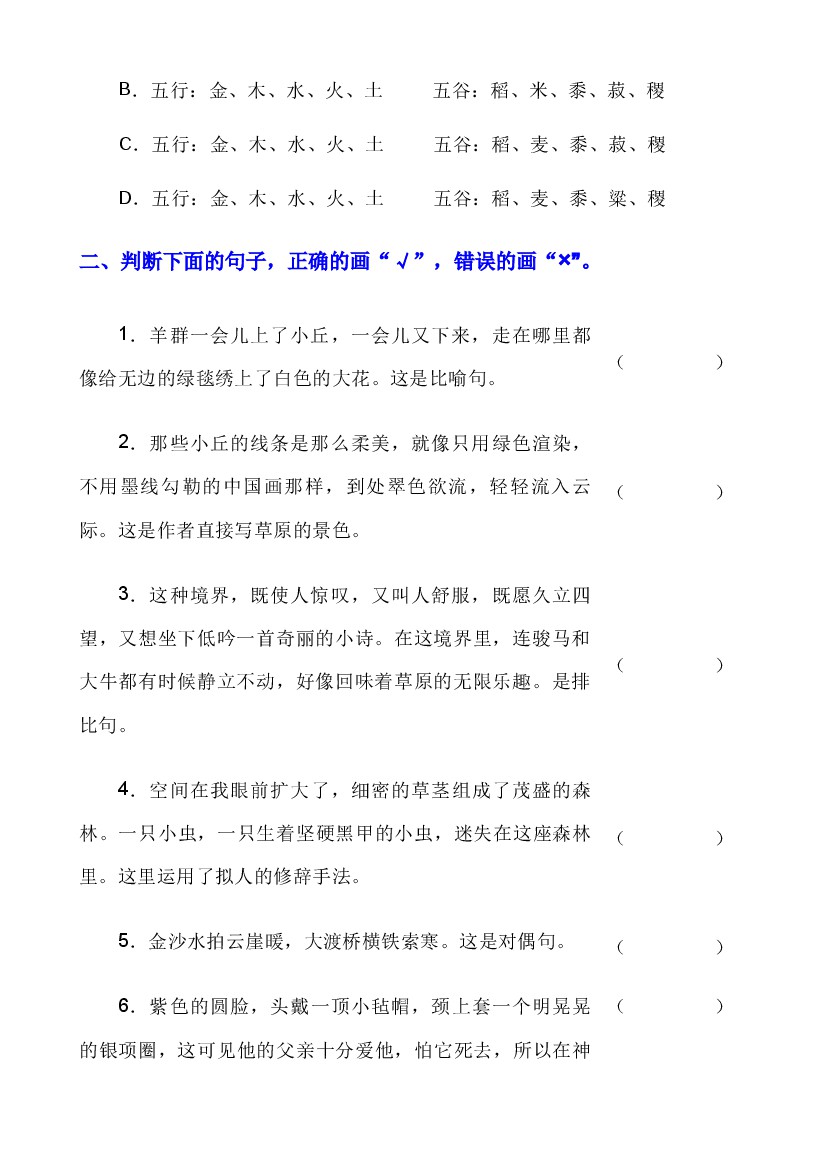 首页 > 全部 > 专项练习 > 六上语文句子综合练习