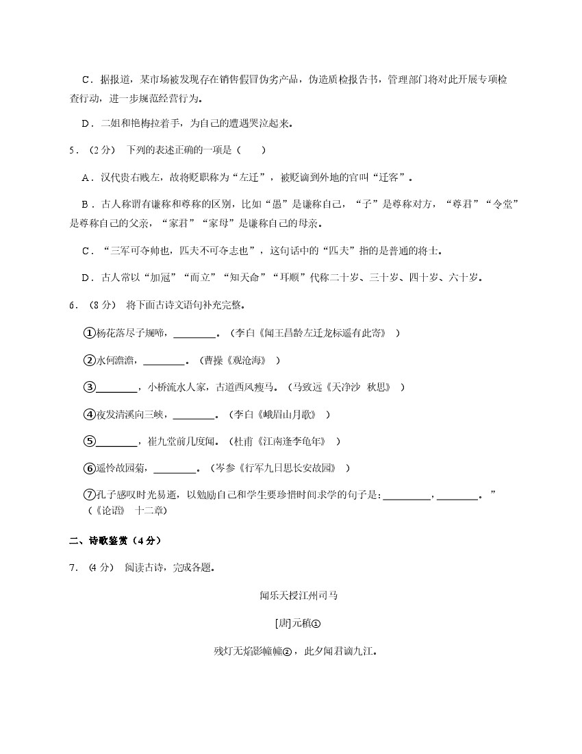 初中 七年级(上)语文期中试卷4-1卷部编版
