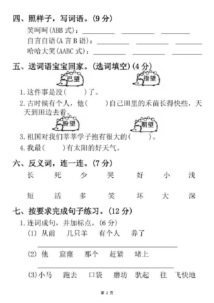 首页 > 全部 > 单元测试 > 二年级(下)语文第五单元综合测试卷-焦急(含答案5页)