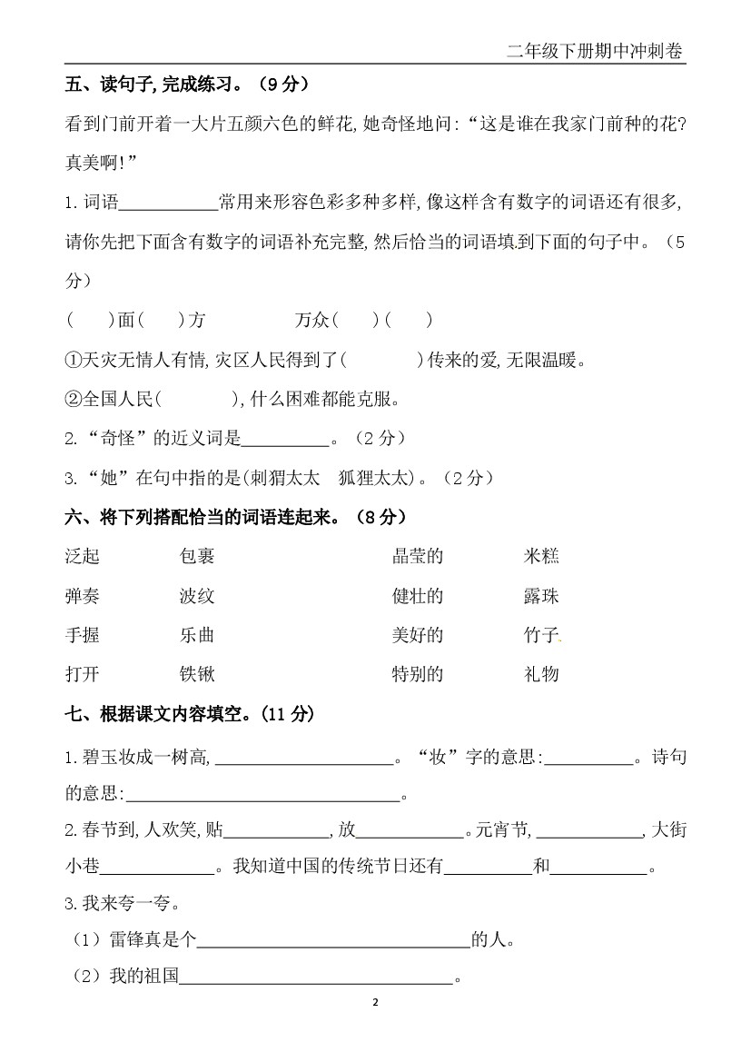 首页 > 全部 > 期中试卷 > 25二下语文期中冲刺卷六套(含提分卷3套+真题卷3套共12套)含答案68页