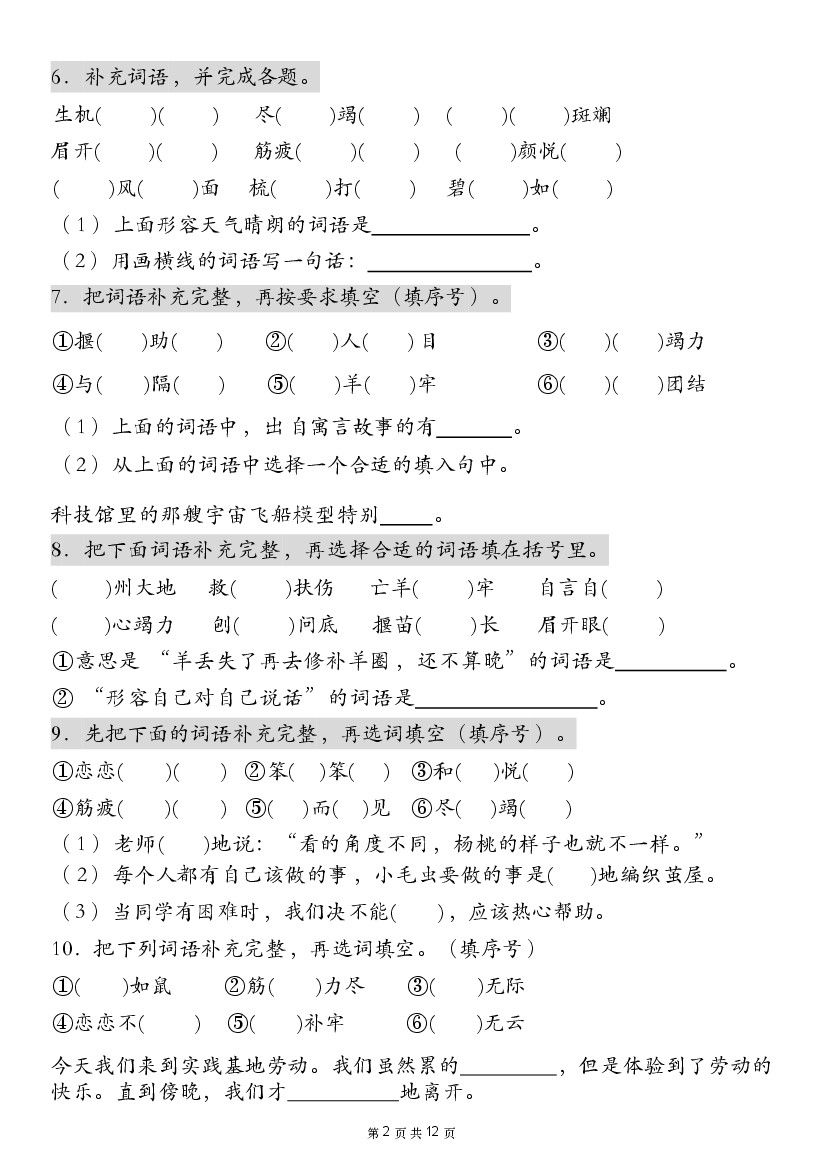二年级下册语文词语搭配专项练习