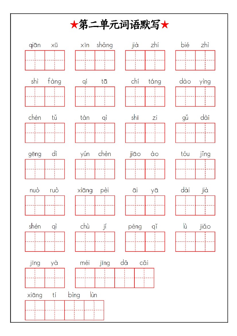 小学 三年级下册语文1-8单元词语默写汇总