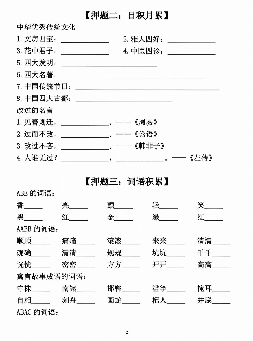 三年级(下)语文期中考试考前押题