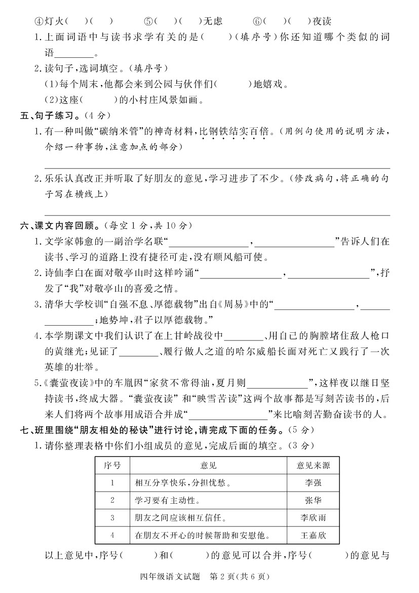 【四下语文】25学年度第二学期期末学情调研测试卷7(1)