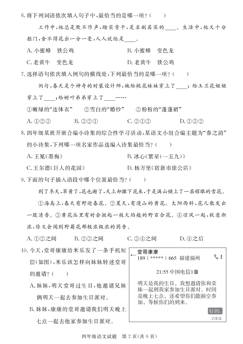 首页 > 全部 > 期末试卷 > 【期末真题模拟】四下语文25学年度第二学期期末测试卷3