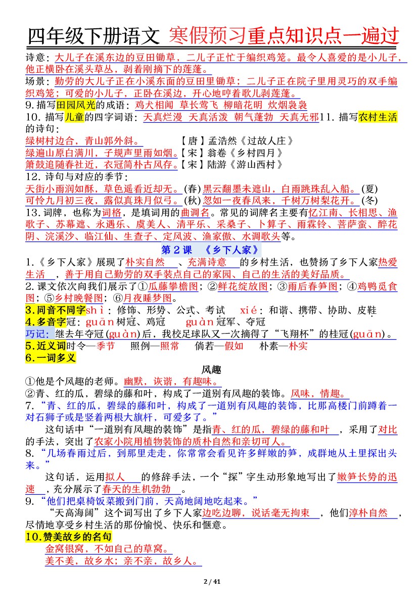 小学 四年级(下)语文【期末复习重点知识点一遍过】
