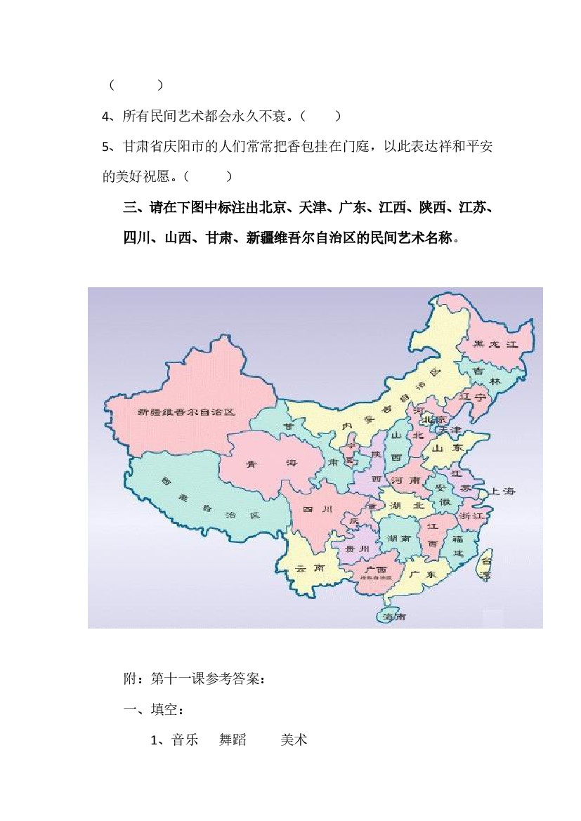 人教部编版四年级下册《道德与法治》第11课多姿多彩的民间艺术课课练
