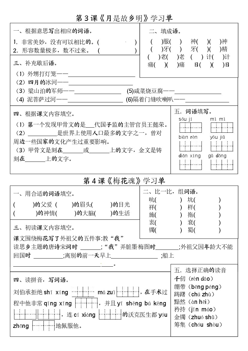首页 > 全部 > 专项练习 > 五下语文课内默写单1-14课(10页无答案)