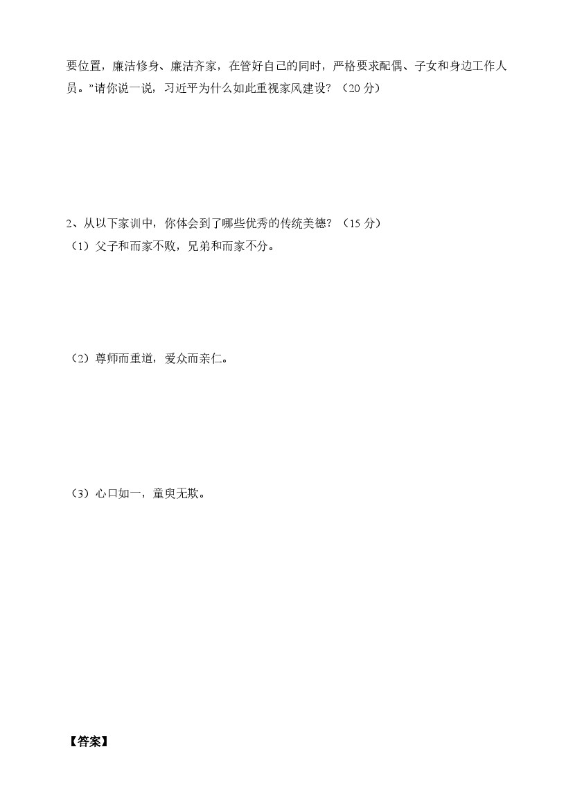 小学 五下道法第三课《弘扬优秀家风》练习题