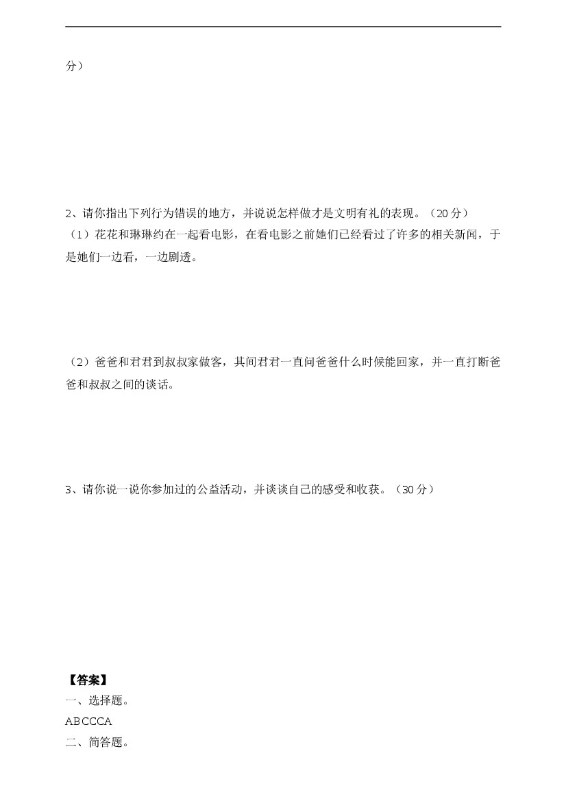 五下道法第六课《我参与我奉献》练习题