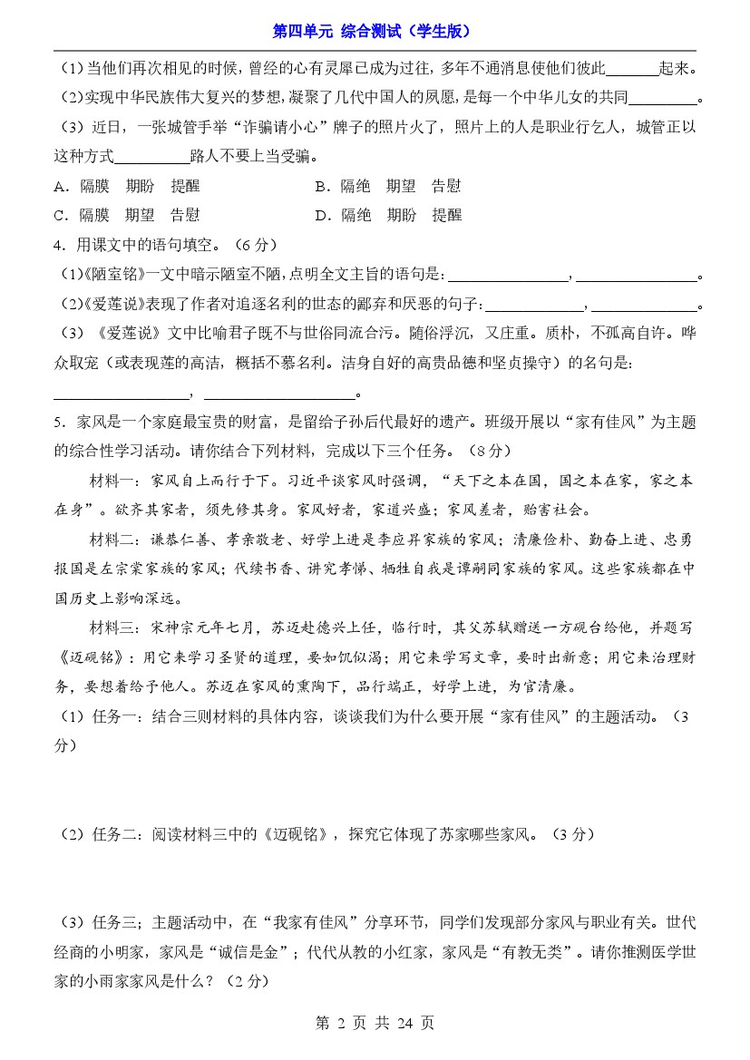 首页 > 全部 > 单元测试 > 25春七年级下册语文单元检测第4单元(综合测试)