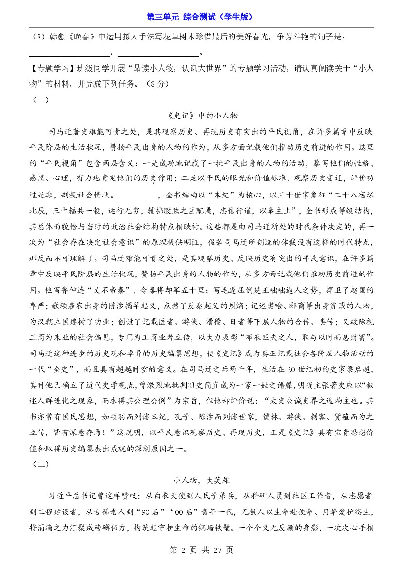 首页 > 全部 > 单元测试 > 25春七年级下册语文单元检测第3单元(综合测试)
