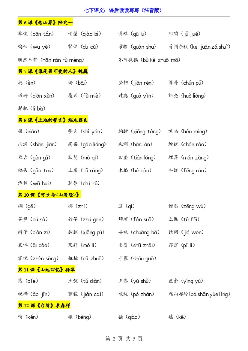 首页 > 全部 > 知识要点 > 2025春七下语文课后读读写写(注音版)