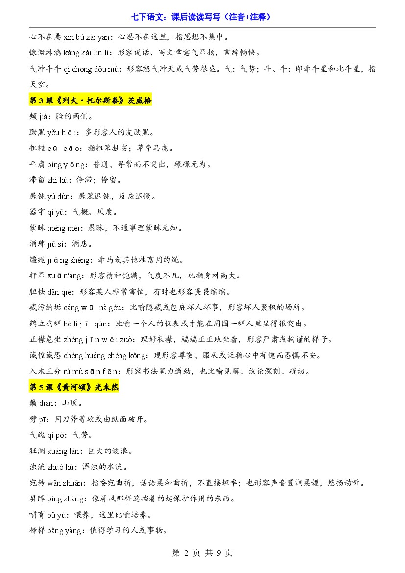 首页 > 全部 > 知识要点 > 2025春七下语文课后读读写写(注音+注释)