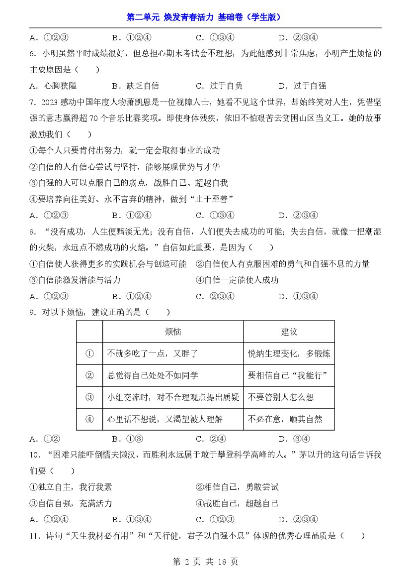 首页 > 全部 > 单元测试 > 2025年七下道法单元检测卷第2单元焕发青春活力(基础卷)