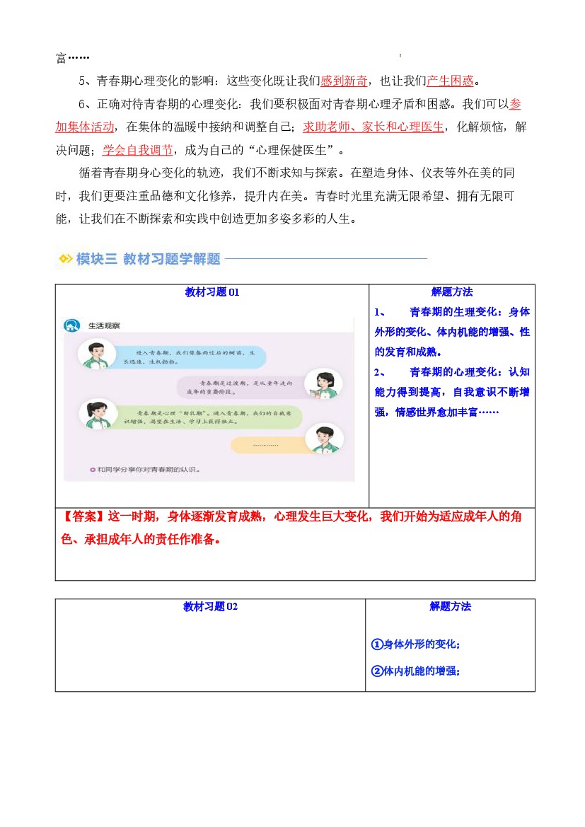 初中 2025年七下道法讲练测试第01讲青春的邀约(预习)(原卷版)