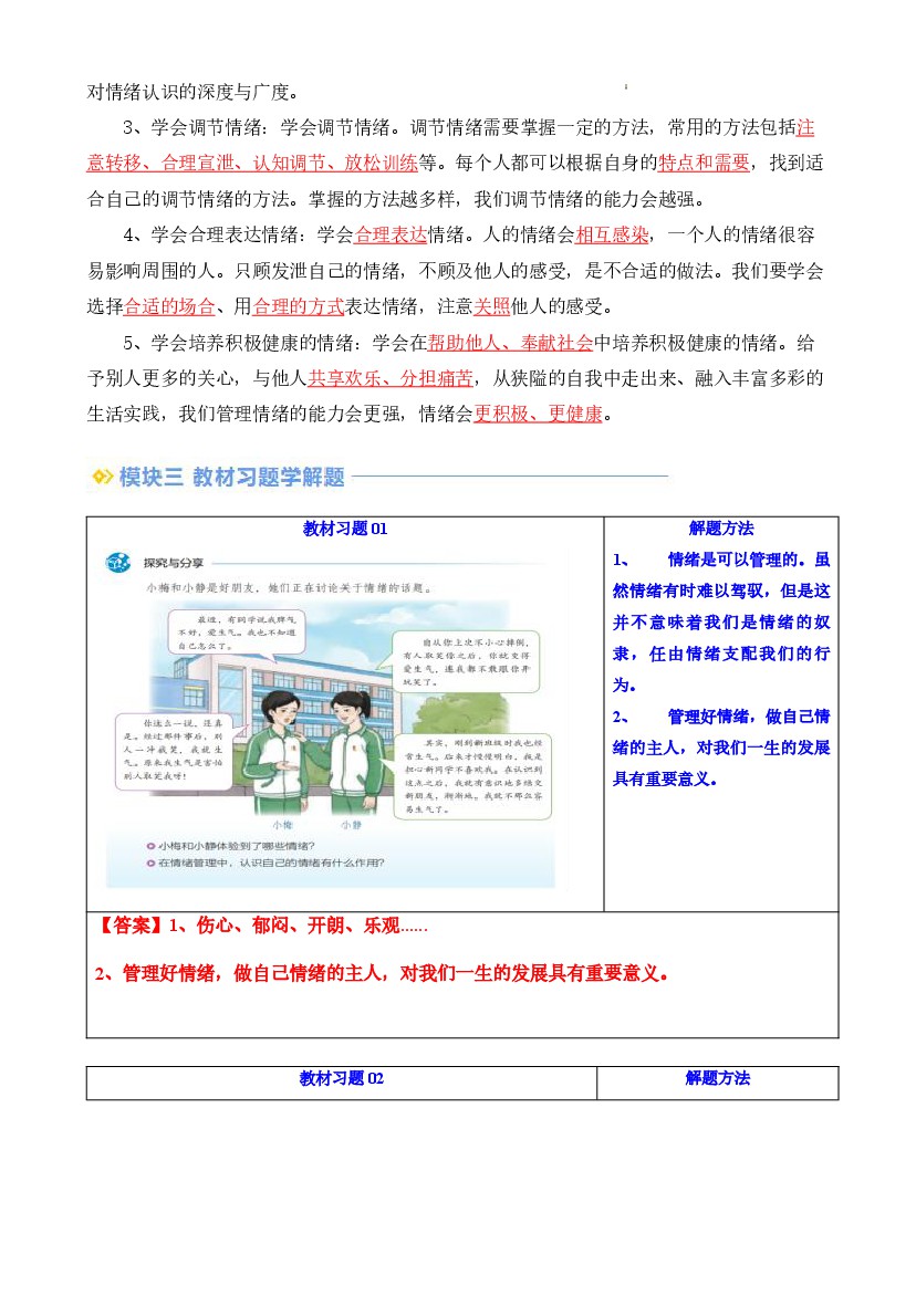 初中 2025年七下道法讲练测试第05讲学会管理情绪(预习)(原卷版)