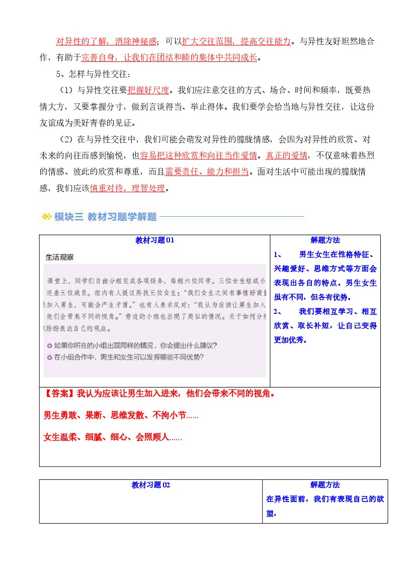 初中 2025年七下道法讲练测试第02讲男生女生(预习)(原卷版)