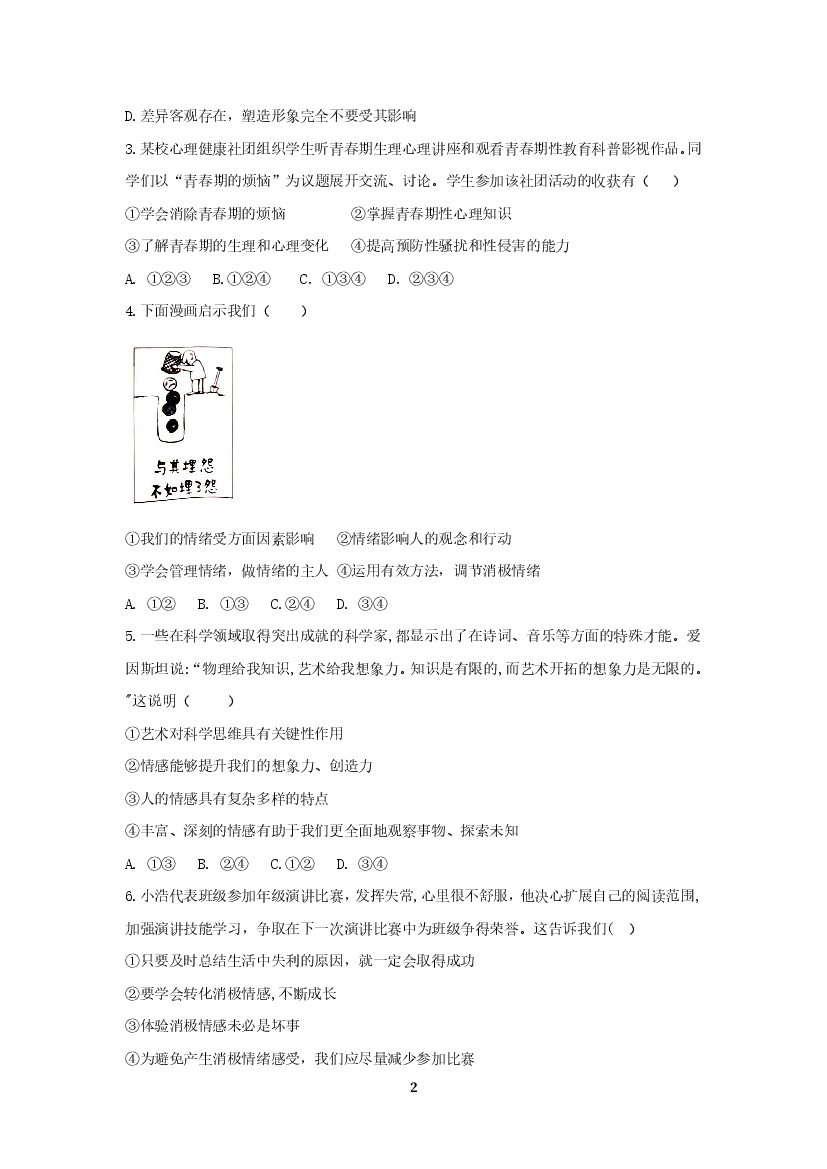 首页 > 全部 > 期末试卷 > 七下道法期末模拟试卷2(含答案)