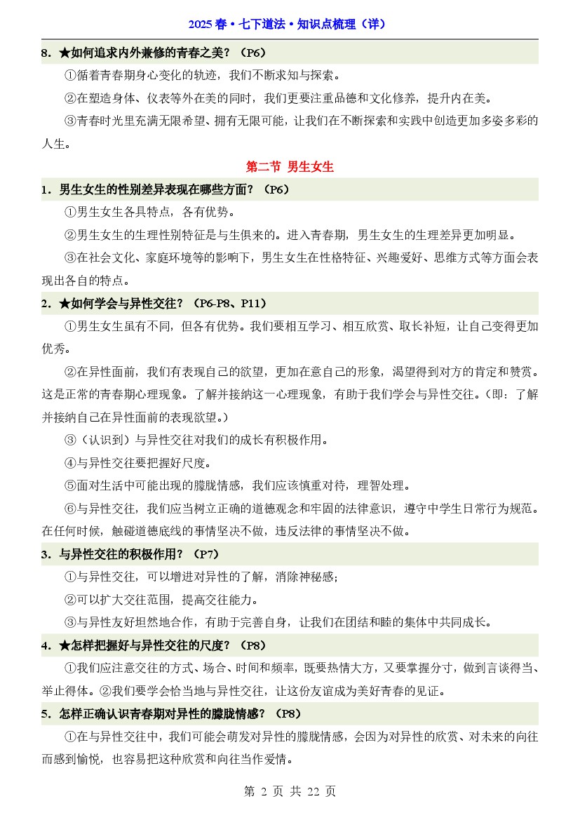 首页 > 全部 > 知识要点 > 【2025春新版】七下道法知识点梳理(详)