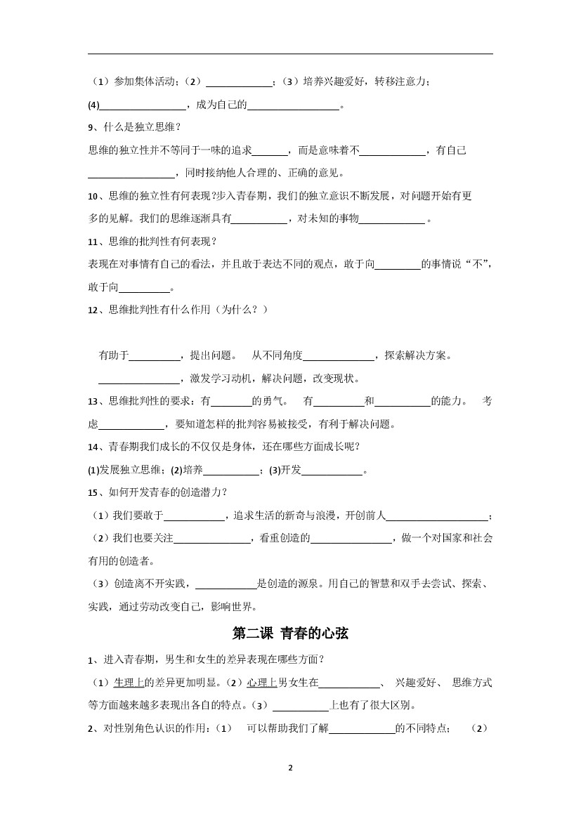 首页 > 全部 > 知识要点 > 【2025春新版】7下道法-基础知识点填空