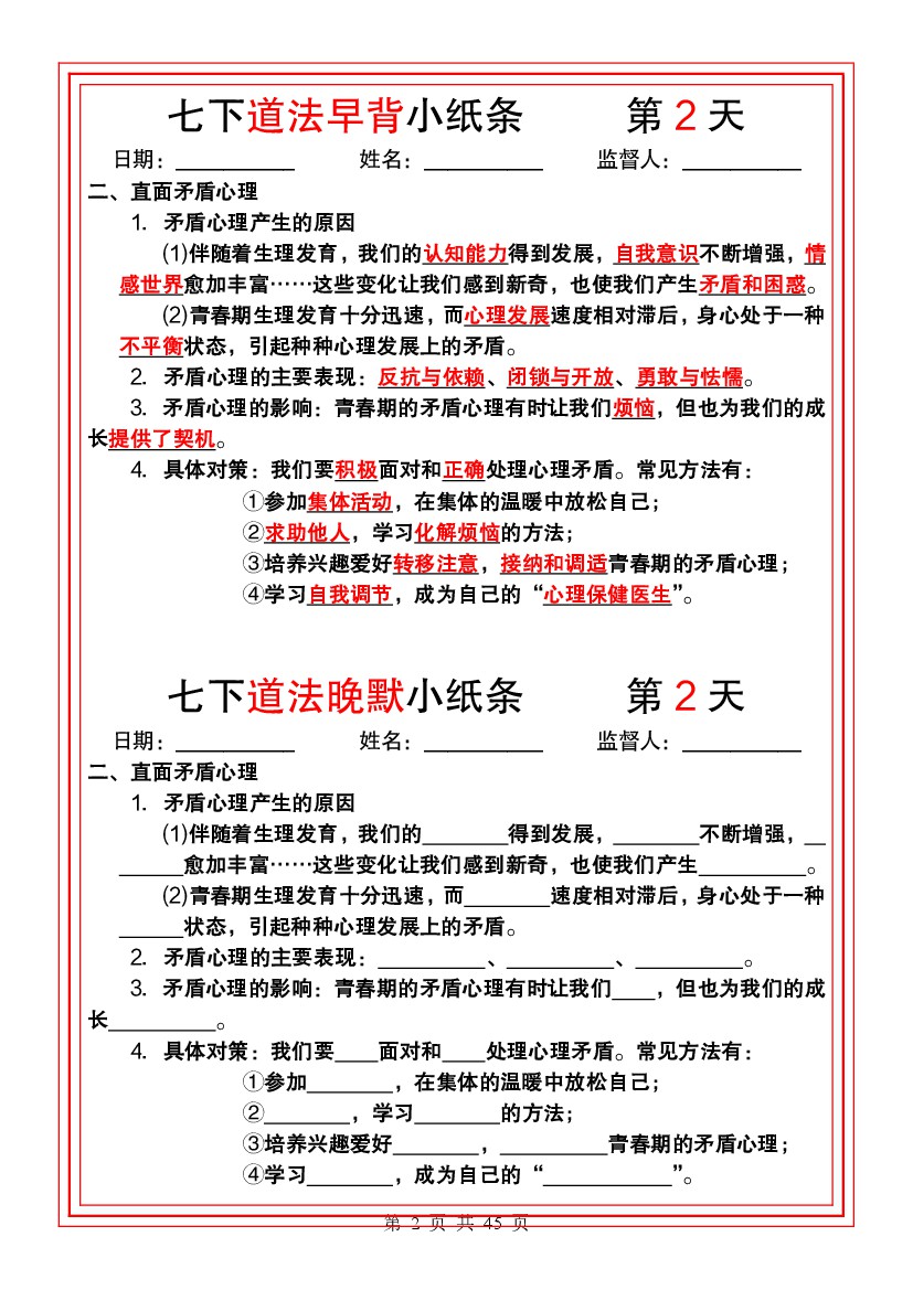 首页 > 全部 > 知识要点 > 七下道法早背晚默(41天)