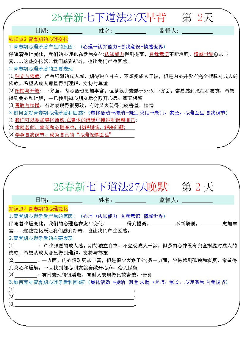 首页 > 全部 > 知识要点 > 25春新七下道法默写早读晚背