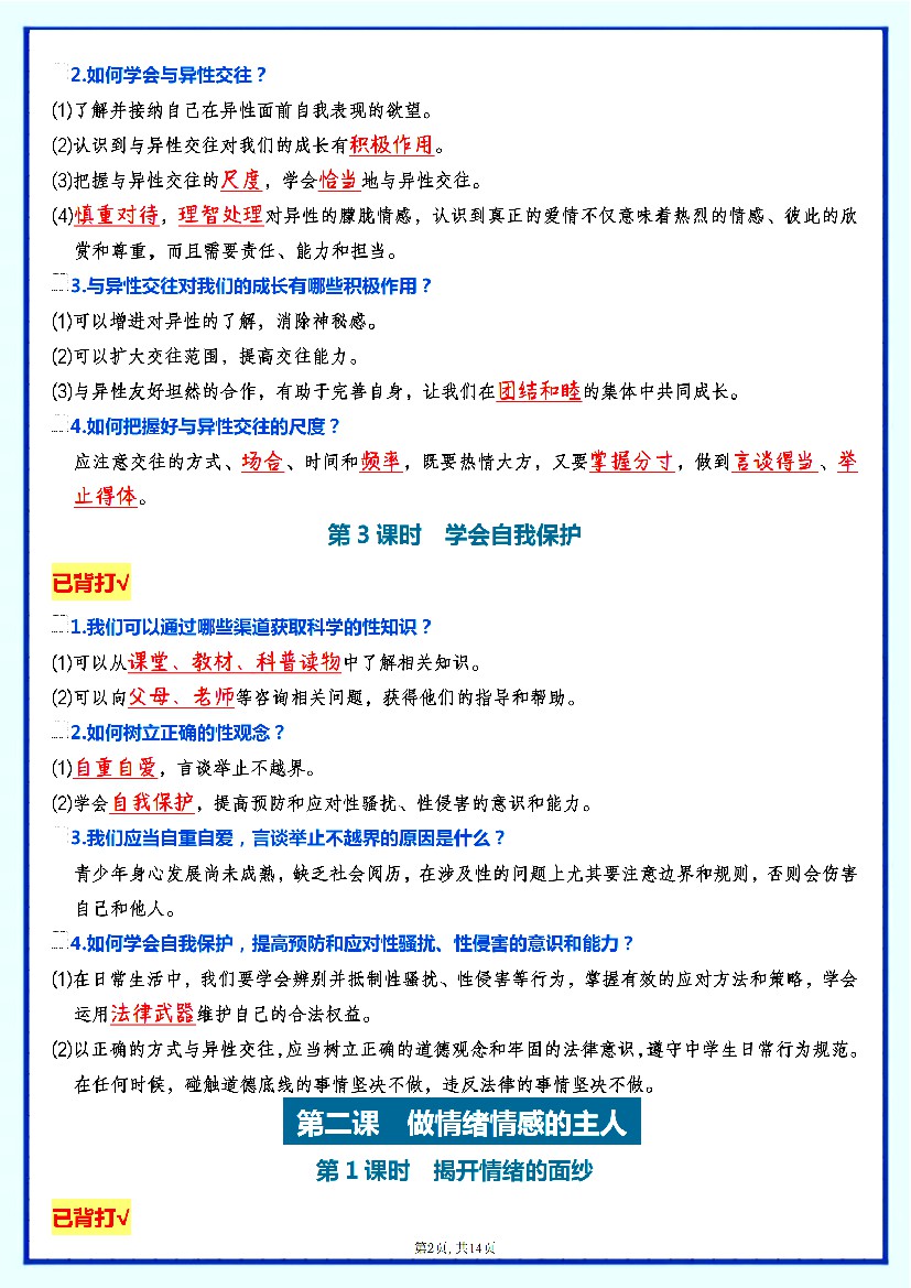 初中 2025七下道法知识点提纲