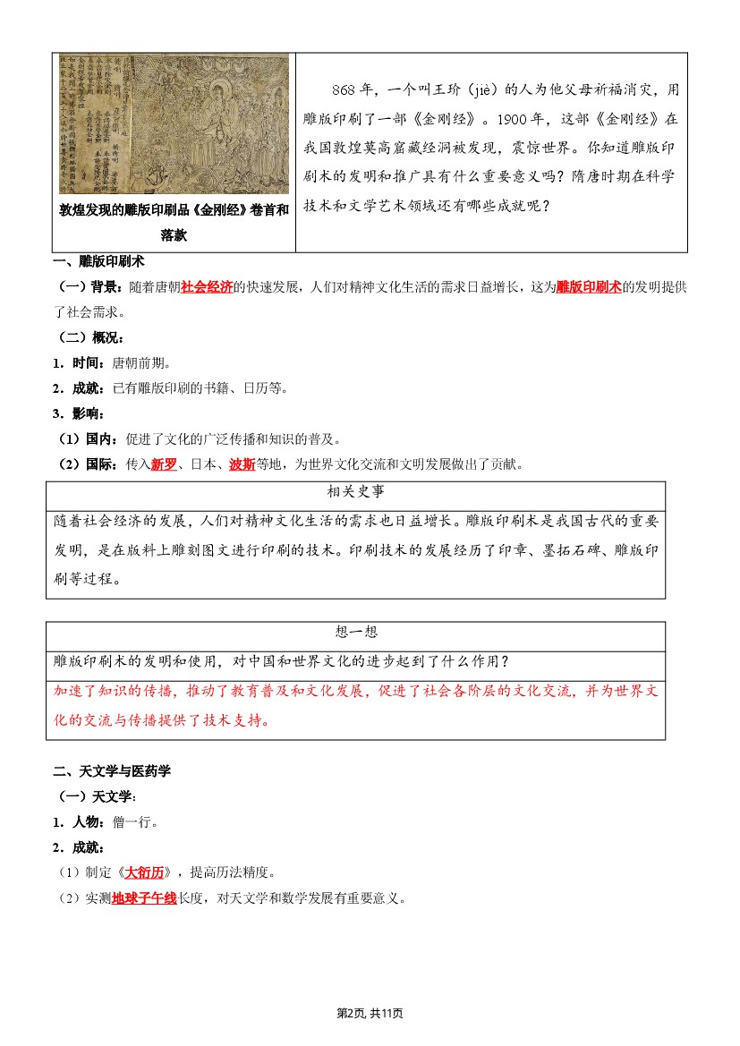 初中 【七下历史】新七下第7课隋唐时期的科技与文化(解析版)