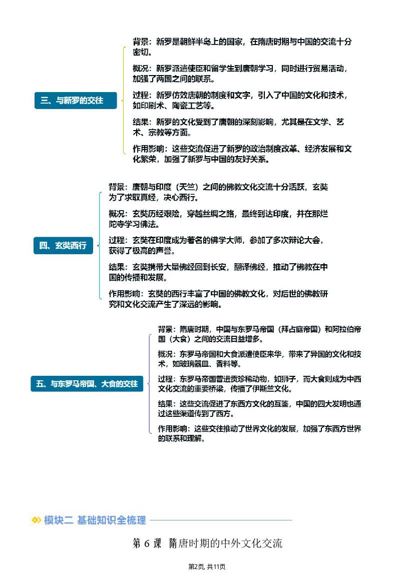 初中 【七下历史】新七下第6课隋唐时期的中外文化交流(原卷版)