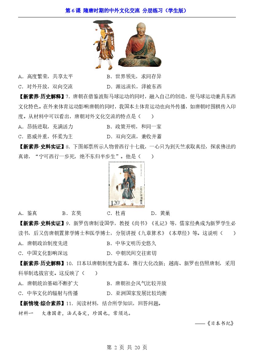 2025年七下历史一课一练第6课隋唐时期的中外文化交流(分层练习)
