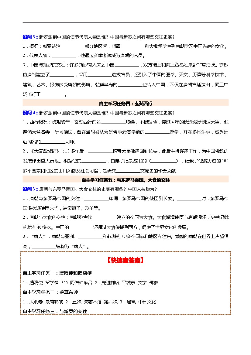 首页 > 全部 > 课时练习 > 2025年七下历史一课一练第6课隋唐时期的中外文化交流(原卷版)-七年级历史下册同步学与练(统编版)