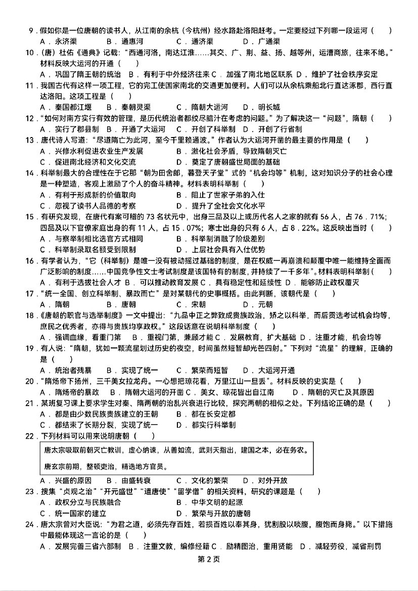 首页 > 全部 > 专项练习 > 人教版七年级下册历史期末复习《选择题》专项练习(含答案)