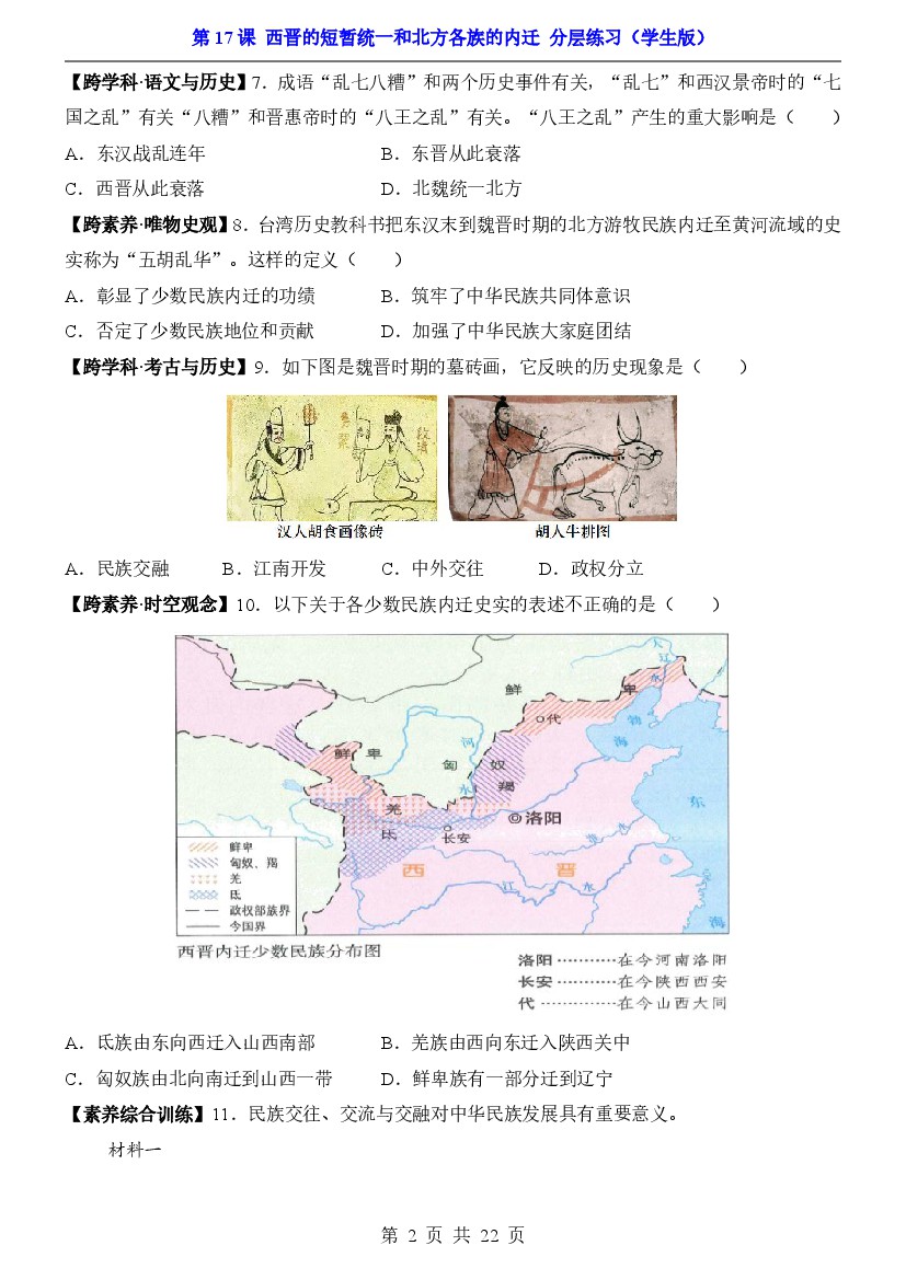 首页 > 全部 > 课时练习 > 七上历史统编版第17课 西晋的短暂统一和北方各族的内迁(分层练习)