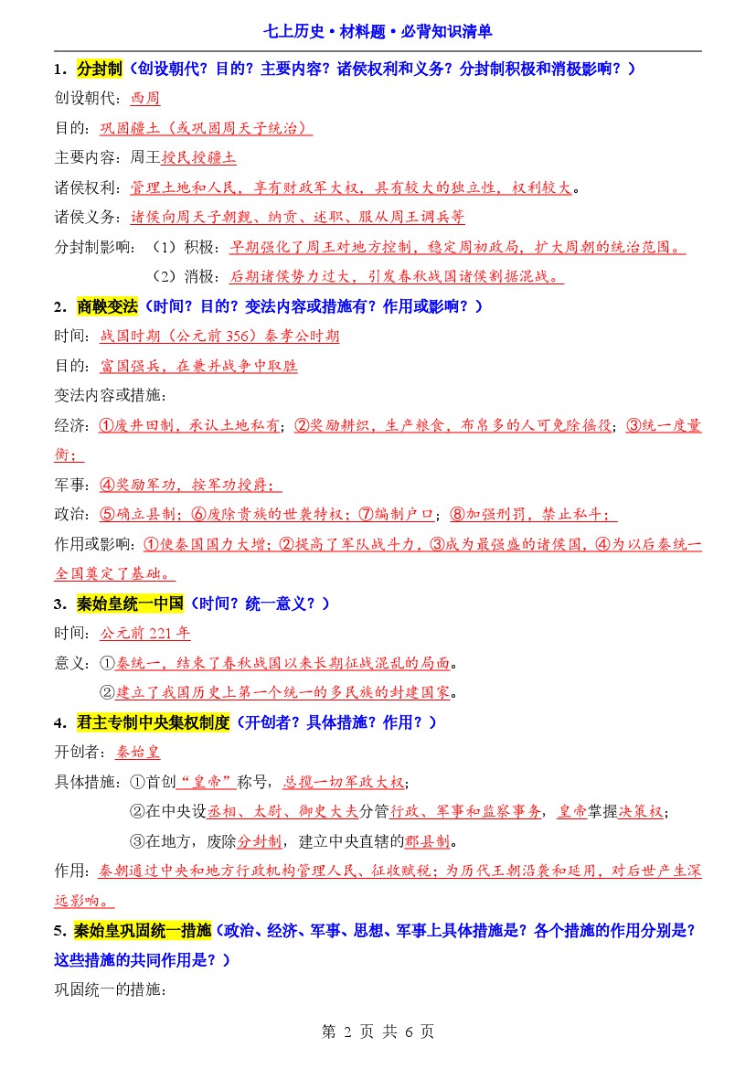 首页 > 全部 > 知识要点 > 七上历史材料题必背知识清单