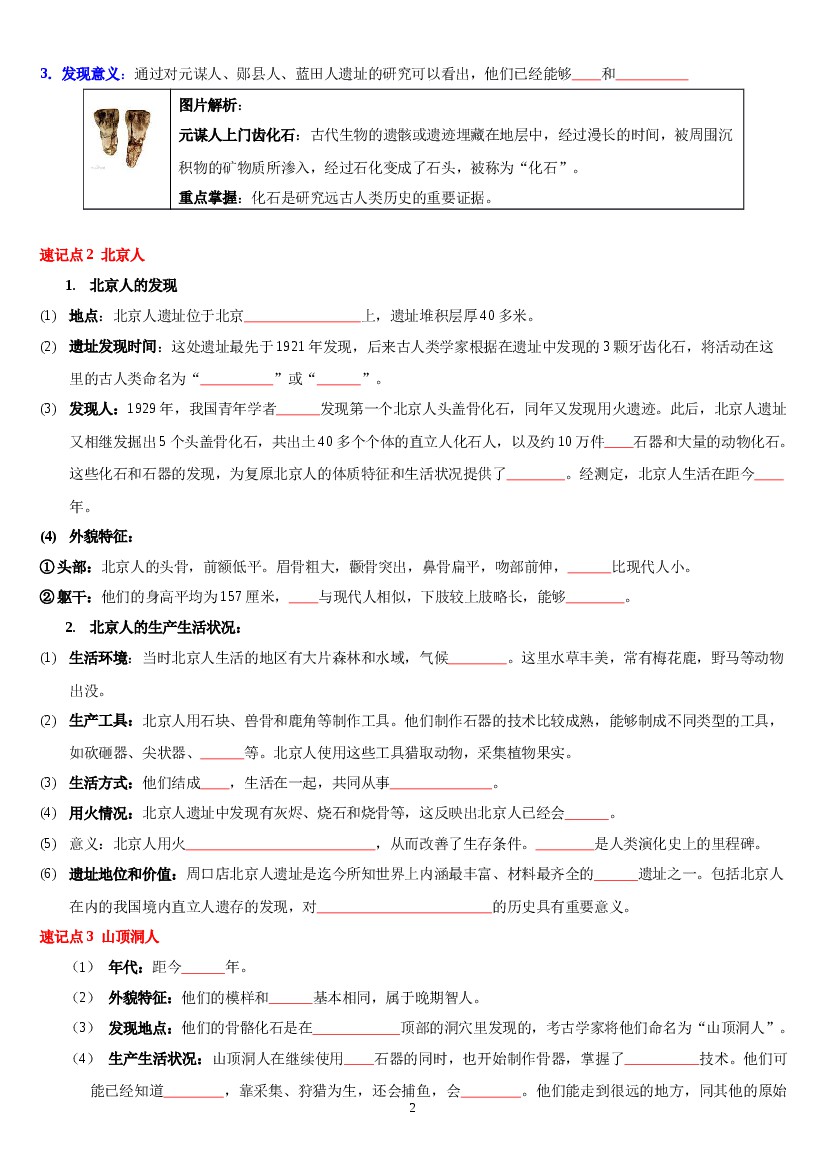 7级上册 【背诵秘笈】初中历史常考知识点(部编版)3页 (生版)全新改版