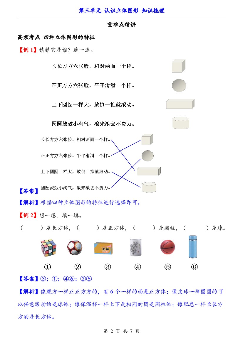 小学 一年级上册人教版数学第3单元(知识梳理)