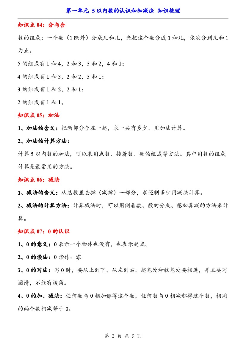 首页 > 全部 > 知识要点 > 一年级上册人教版数学第1单元(知识梳理)