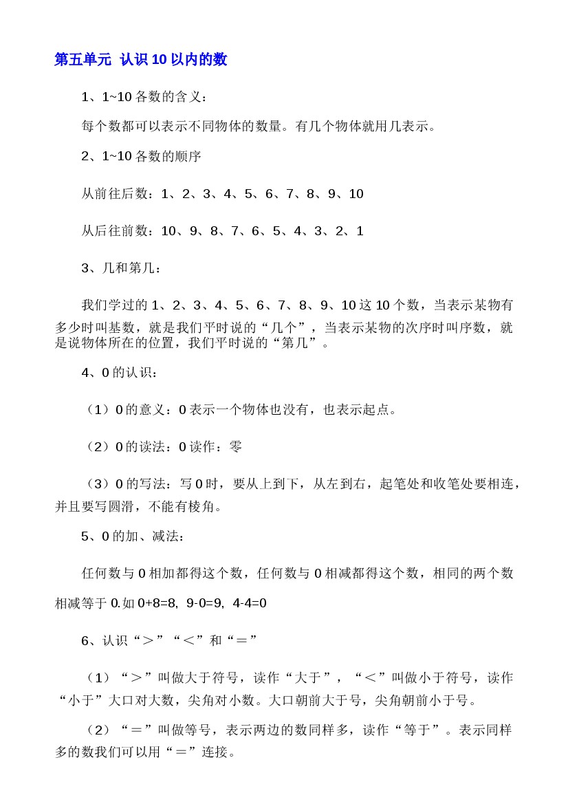 首页 > 全部 > 知识要点 > 【苏教】一上数学知识点总结