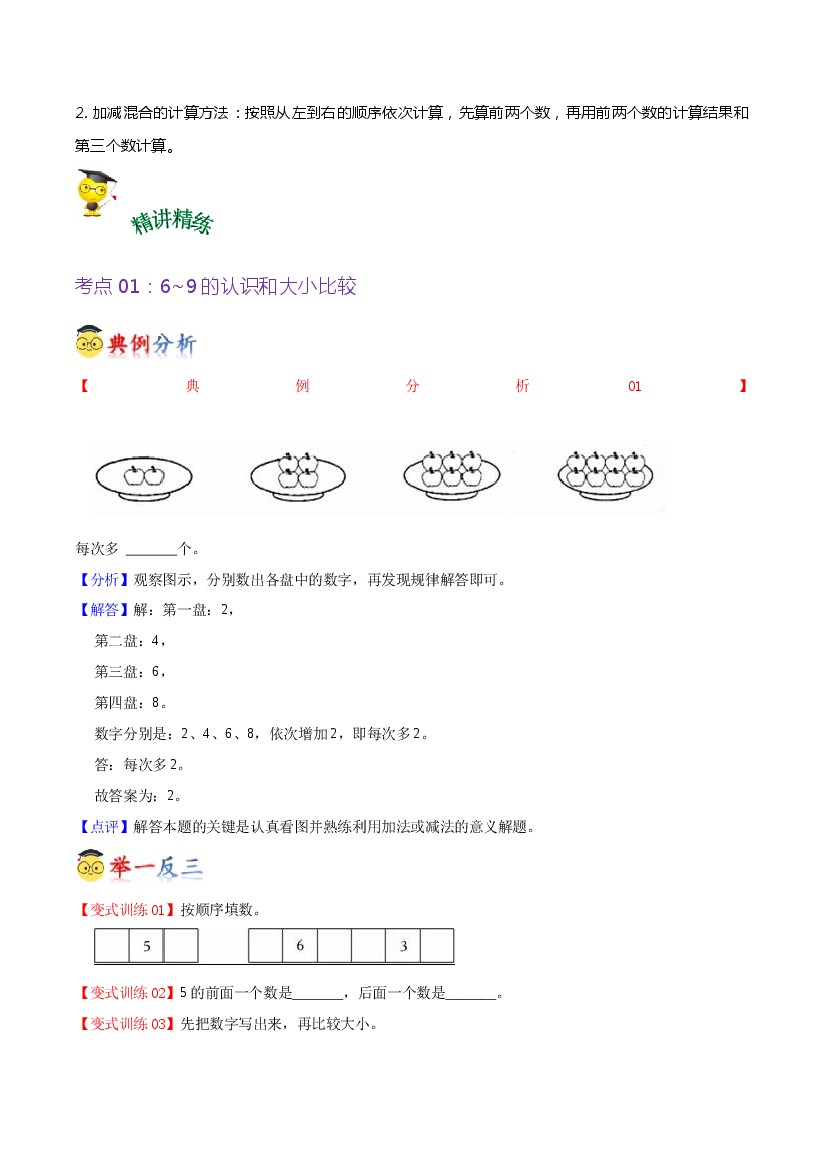 首页 > 全部 > 知识要点 > 第二单元 6~9的认识和加减法(知识清单)-(苏教版•2025秋)
