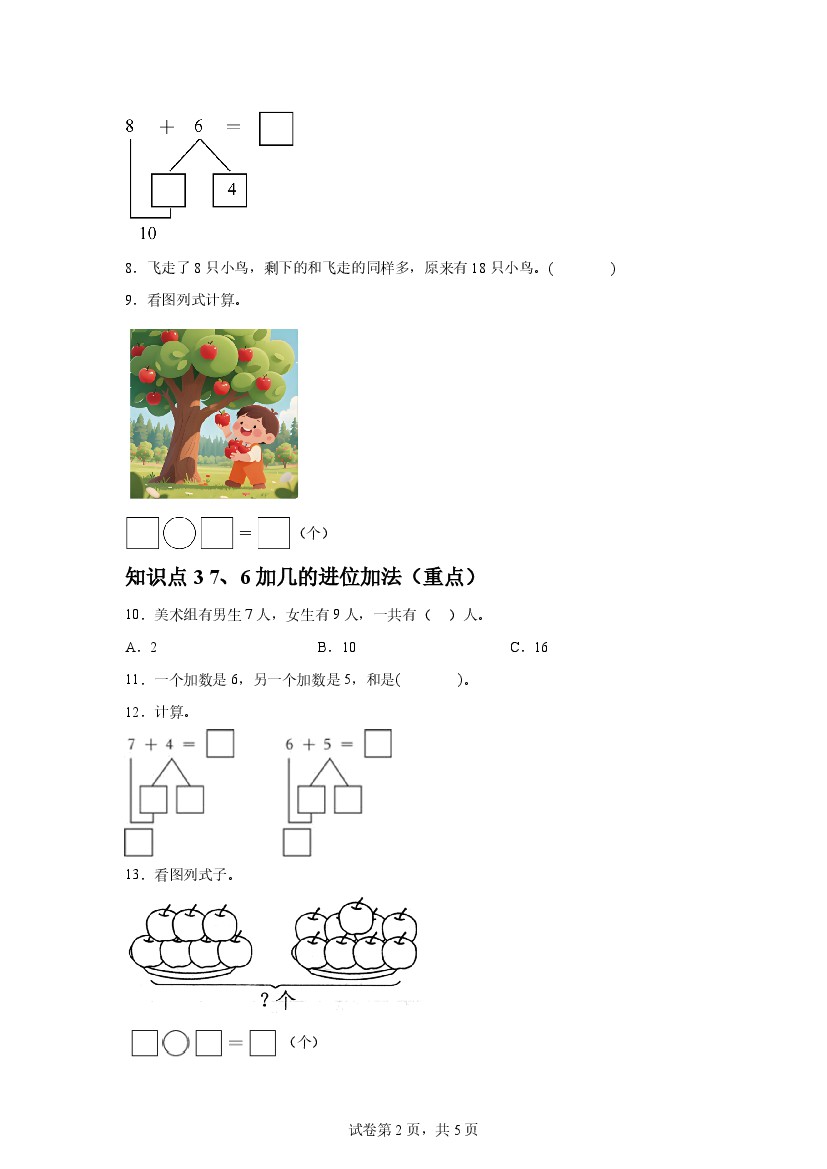 首页 > 全部 > 重点汇总 > 25新一年级数学人教第五章 20以内的进位加法考点考题点点通