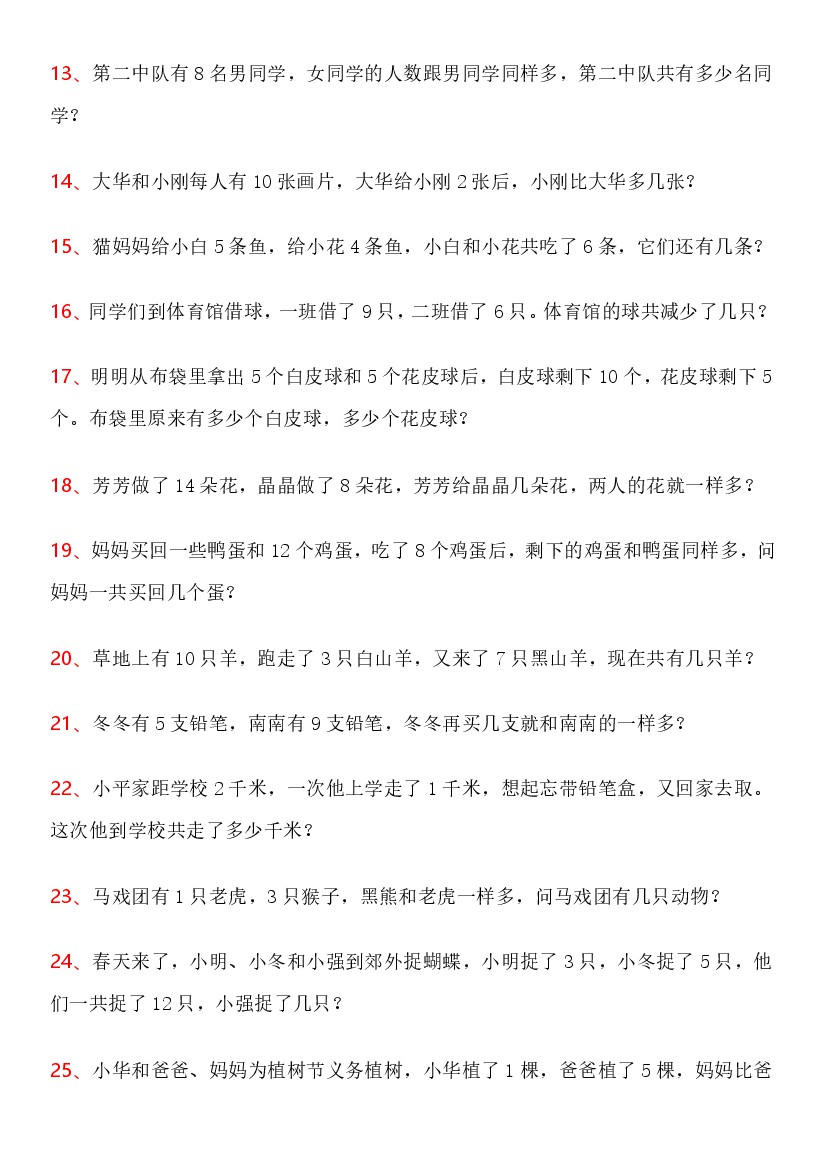首页 > 全部 > 专项练习 > 【2025秋新版】一年级数学应用题100道(高难度)