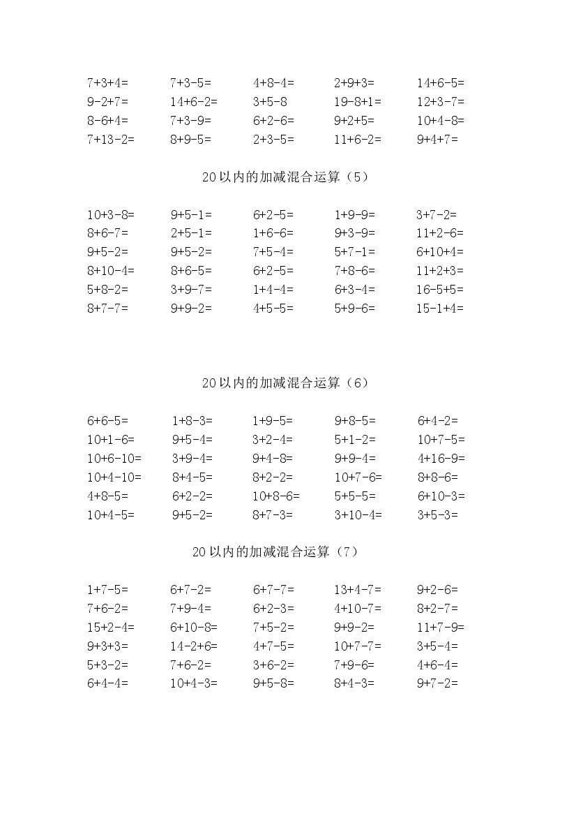 首页 > 全部 > 专项练习 > 一(上)数学20以内的加减混合运算