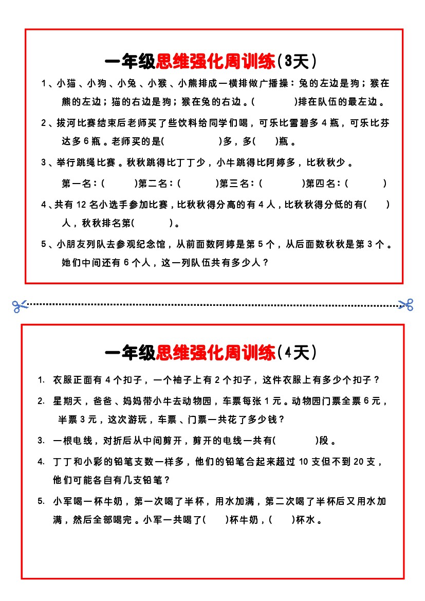 【一年级】数学思维周训练小纸条