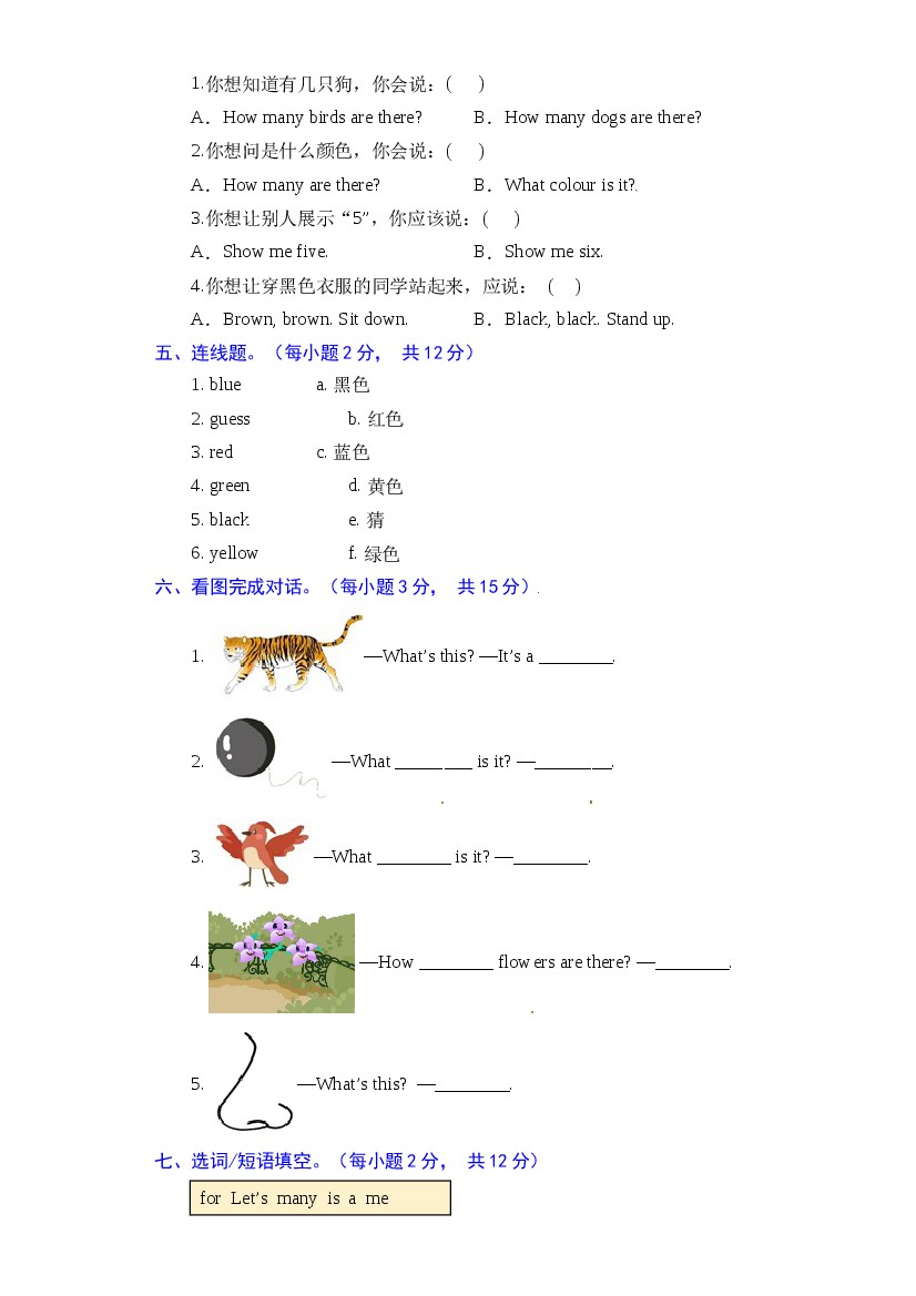 小学 一上英语(人教版)(05)--第五单元能力提升卷-Unit 5 Colours