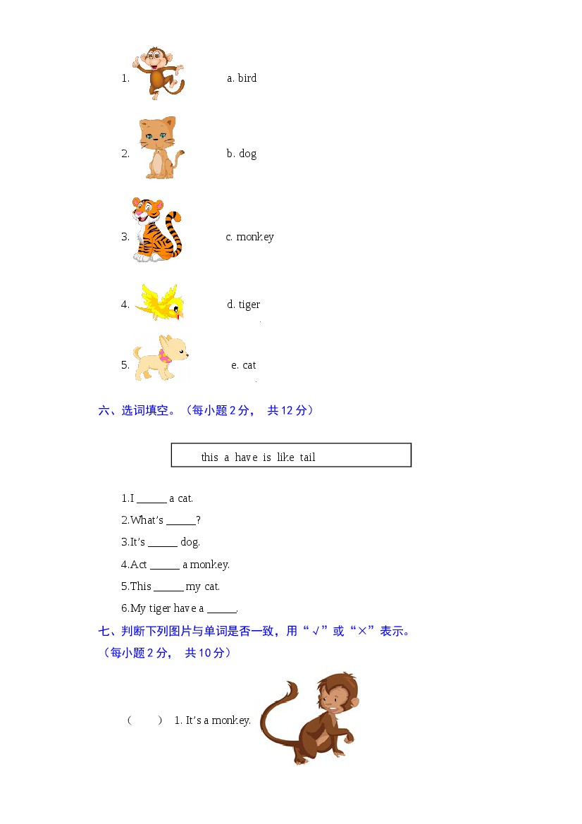 首页 > 全部 > 单元测试 > 一上英语(人教版)(03)--第三单元核心基础卷-Unit 3 Animals
