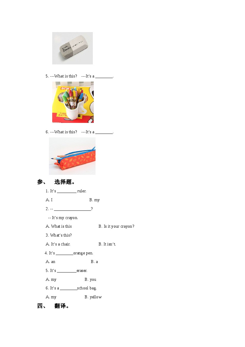 小学 外研一起一上英语Module 6 Unit 2 It’s my ruler 同步练习3
